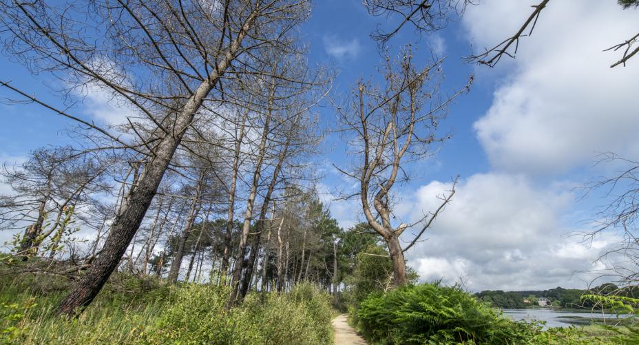 Les pins maritimes ont été touchés par les flammes et présentent un dépérissement irrémédiable, qui peut entraîner aujourd’hui un danger pour les visiteurs qui empruntent le chemin côtier, très fréquenté.