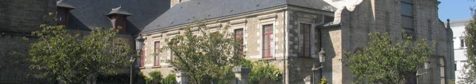 En 1791 les Carmes déchaussés de Vannes sont expulsés et leurs biens confisqués. Le mobilier et une partie de l'immobilier sont vendus biens nationaux. Seuls le couvent et les terrains ne trouvent pas d'acquéreur et la chapelle sert temporairement de dépôt pour la Marine. En 1802 l´évêque concordataire monseigneur de Pancemont se fait accorder l´ensemble. En 1828, les travaux initiés par Brunet-Debaines sont entrepris mais interrompus l'année suivante. Ils concernaient la réparation du lambris de la voute de la nef, la cloison de bois séparant la charpente de la nef de celle du choeur, le plafond du choeur primitif, la quasi totalité du dallage intérieur et le mur circulaire du fond du choeur remodelé par la construction de colonnes et d'une voute en forme de coupole en plâtre. Le projet est repris par Charier entre 1863 et 1869. Des travaux déjà réalisés dans le choeur par Brunet-Debaines, seul est conservé le mur circulaire ; le reste du décor est démoli. L´évêché occupe les lieux jusqu´à la Séparation de l´Eglise et de l´Etat, avant que la ville n´en reprenne la totale jouissance y installant tour à tour le musée, un cours d´enseignement général, puis l´école de musique en 1979. Quant aux anciens jardins, ils laissent place au parc des sports.