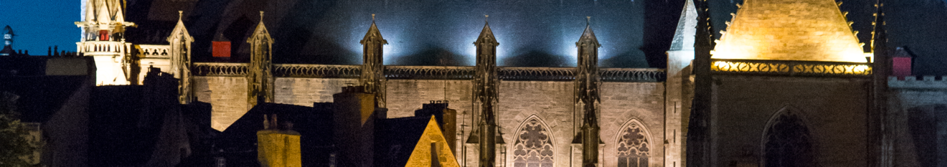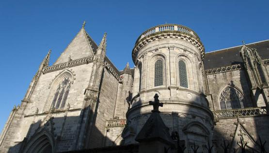 Sur la colline du Mené, la cathédrale Saint-Pierre domine la ville. Au XVe siècle, la nef à vaisseau unique est restaurée dans le style gothique, mais l’église n’est pas encore voûtée.