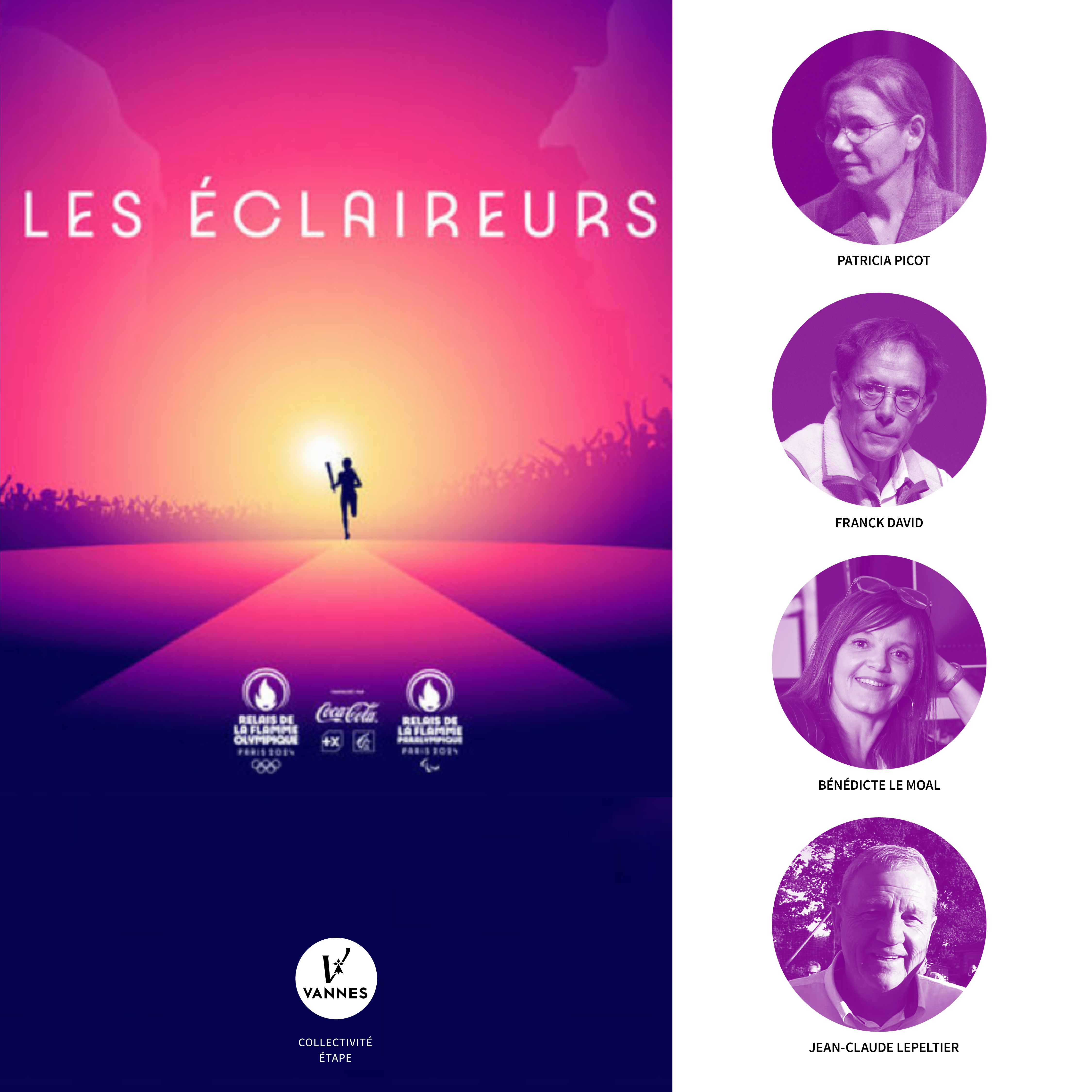 Le nom des quatre éclaireurs de la ville ont été dévoilés le 15 janvier 2024. Sur un total de sept kilomètres, ils feront partie des 30 relayeurs pour conduire le flambeau jusqu'au chaudron où il sera allumé au cours d'une cérémonie symbolique sur l'esplanade Simone-Veil. La flamme traversera la ville, aux mains de celles et ceux qui incarnent le sport vannetais dans sa pluralité. La journée se clôturera par un moment convivial et festif autour du port.