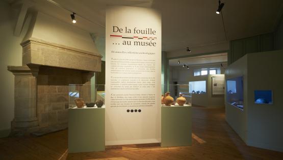 L’exposition « De la fouille au musée » a pour vocation de retracer le parcours d’objets issus des fouilles archéologiques jusqu’à leur présentation au public.