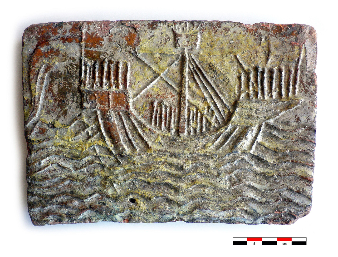 Carreau représentant une nef, manoir ducal de Plaisance © Musées de Vannes