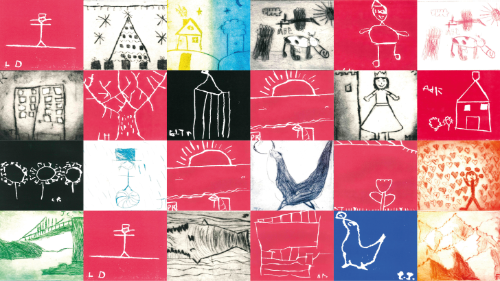 Les élèves, accompagnés par le guide-conférencier et l’artiste Jean-Marie Flageul, explorent ensuite en classe et dans l’atelier du Manoir de Trussac, la pratique de différentes techniques : pointe sèche sur zinc ou plexiglas et linogravure. De l’œuvre à l’expérimentation technique, l’atelier gravure donne naissance chaque année à de belles productions.