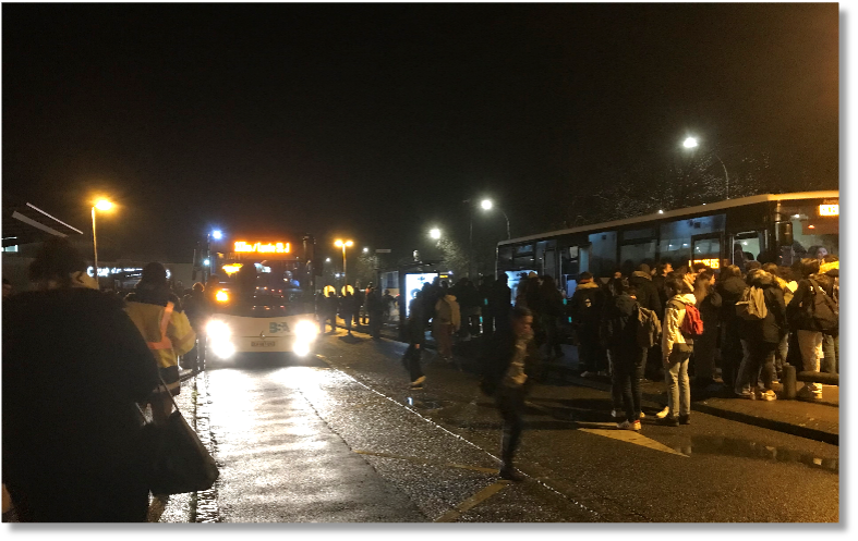 - Problème important de sécurité des élèves avec dépose et cheminement entre les cars, accentué en hiver par la nuit.